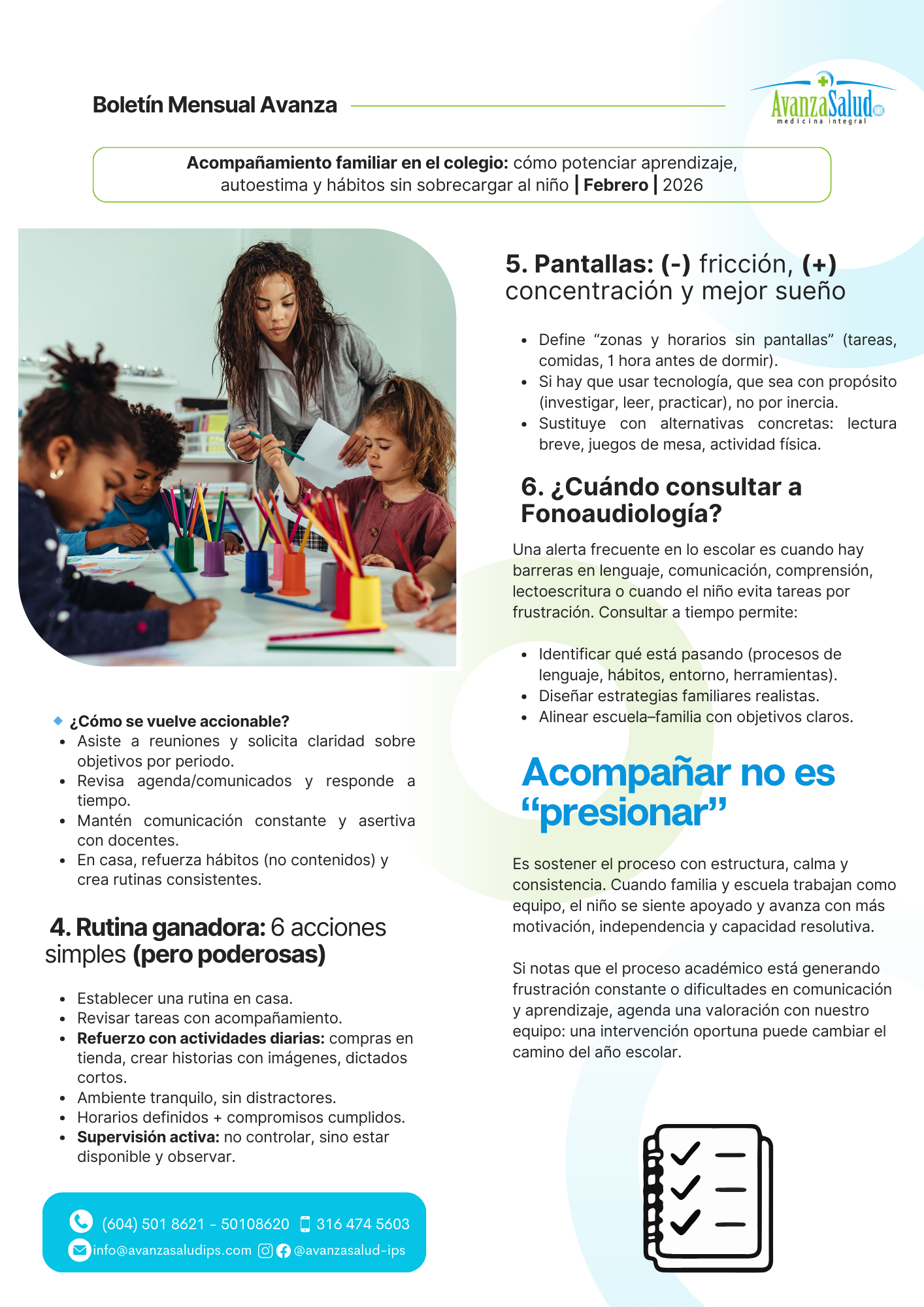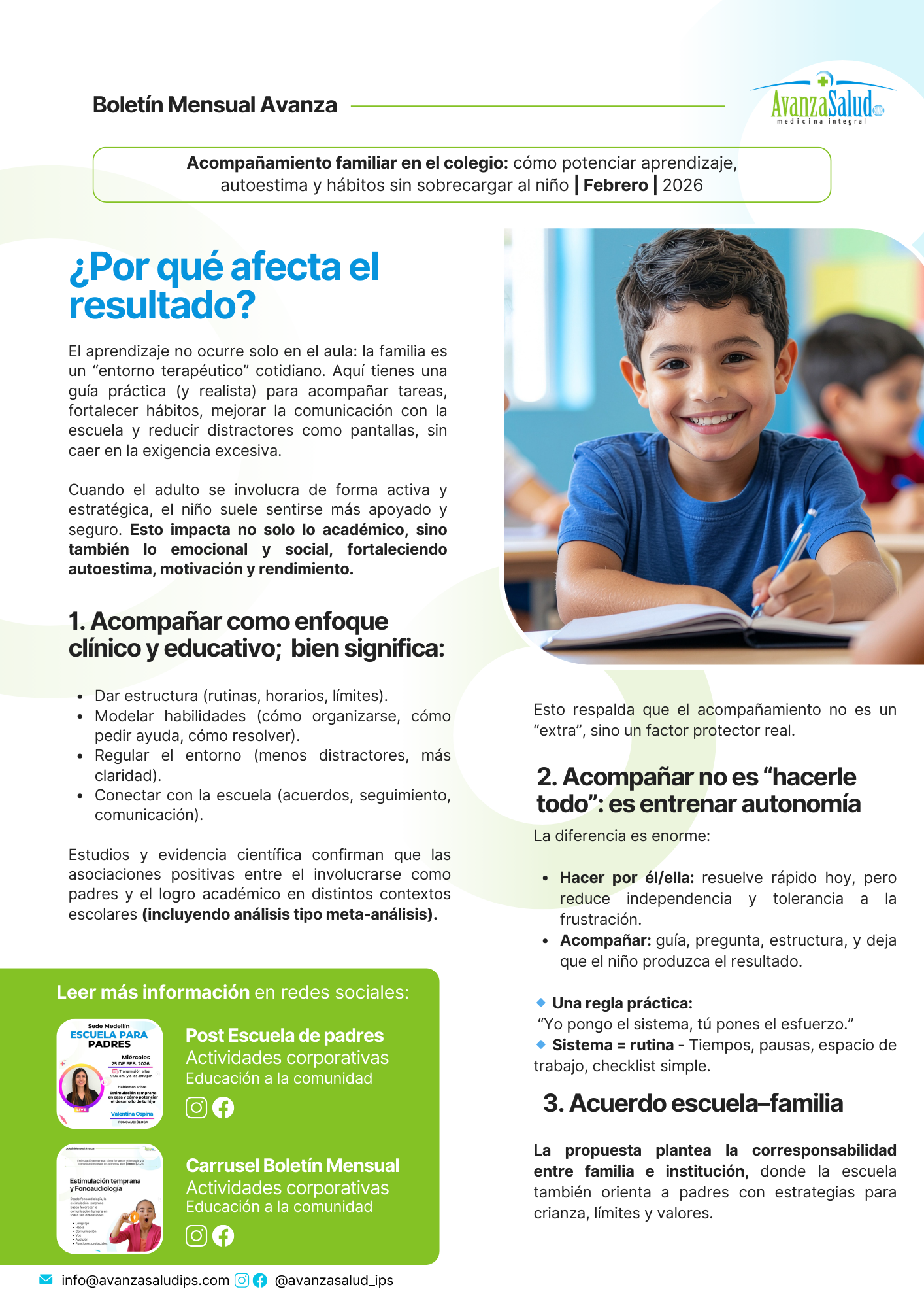Boletín Febrero 2026: Acompañamiento familiar en el colegio: cómo potenciar aprendizaje, autoestima y hábitos sin sobrecargar al niño